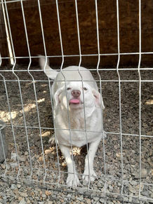 Blue-Eyes a été abandonnée devant les portes du refuge des Innocents pendant l'été 2021. Elle était très jeune, Maria et Ferenc l'ont nourri au biberon et la puce a pu grandir normalement